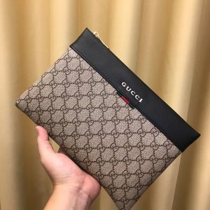 Gucci Men’s Black Leather Clutch Handbag with GG Logo