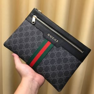Gucci Men’s Black Genuine Leather Clutch with GG Logo