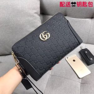 Gucci Men’s Black Red Leather Clutch with GG Logo