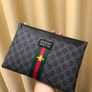 Gucci Men’s Brown GG Supreme Clutch with Green and Red Web and Bee Black $198.00