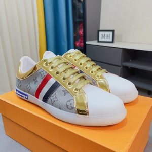 LV Men’s Leather Sneakers with Gold Details $169.00
