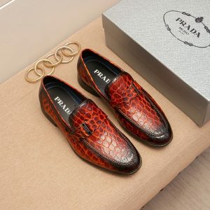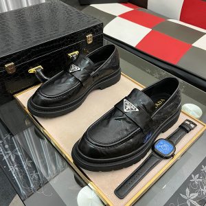 Prada Men’s Leather Loafers, Dress Business Leather Shoes