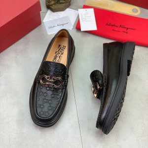 Black Leather Ferragamo Shoes Men’s Leather Loafers-3