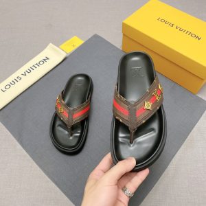 LV Men’s Leather Slides,Luxury Slippers Sandals LOV090 $129.00
