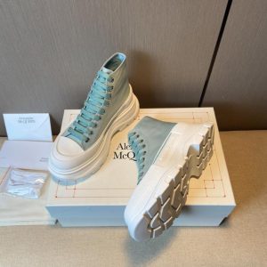 Alexande McQueen2022早春新款运动鞋,小白鞋➕新配色~~增高系列真的好看 原版牛皮面/磨砂皮/绸缎面……高韧丝绸牛里垫脚/透气网砂内里 4.5cm抽真空PU大底 最新钢印Logo标 码数:35-40正码 TX1341330