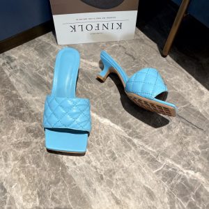 Bottega Veneta Women’s Square-toe Blue Leather Mules Sandals $169.00