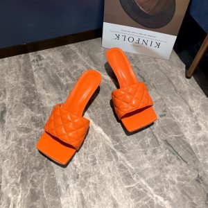 Bottega Veneta Women’s Square-toe Orange Leather Mules Sandals $169.00