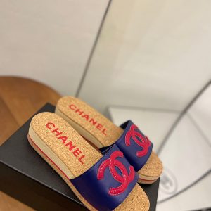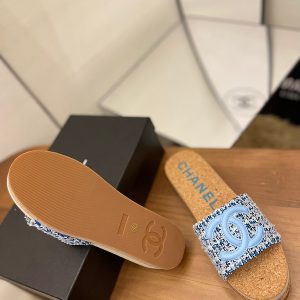 Chanel Women’s Tweed Leather Slides with Chanel Logo -007