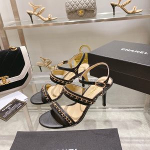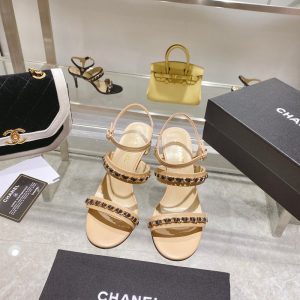 Chanel Women’s Nude Leather Sandals with Chain -002