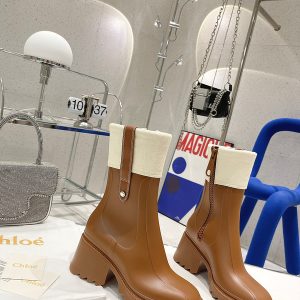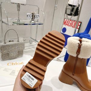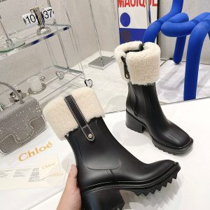 羊毛款〉Chloe 寇依2022 最新PVC高跟雨靴 呼应雨季潮流 最潮穿搭系列 经典皮靴风格 靴型超赞 潮人百搭必备款 原版开模 大底、鞋身 带有原版一致logo 内里原版袜 材质:原版1:1 进口环保无味PVC 跟高:6cm 码数:35-40 原版顶级包装 TX1183330