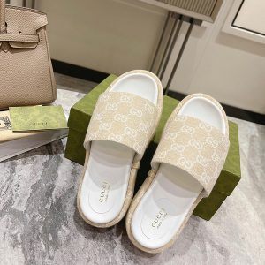2022最新款女士GUCCI 防水台拖鞋 在《古驰爱的进行曲》全新时装系列中,GG Supreme帆布推出了经典隽永的米色雪花组合,体现出这种材质的历史渊源。这种交织字母设计十年如一日地出现在每个系列中,已经成为品牌的经典标志。 这一配色给这款厚底凉鞋注入了别样魅力。 米色雪花❄️GG帆布 女士 橡胶鞋底 低跟 意大利创作 码数35~44码 多个颜色可选 cx105240