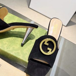 GUCCI 古驰 新款拖鞋 ,时尚高端又个性十足的一款✅ 上脚很稳舒适又耐穿,日常搭配方便又独特,夏日必备经典款,鞋面采用GUCCI品牌金属圆弧饰扣’ 电镀银色跟✅ 面料:牛皮/羊京 内里/垫脚:羊皮 真皮大底 跟高:8cm 颜色:黑牛皮 黑羊京 粉色 酒红色 码数:35—40 (34、41需定做)配有布袋 卡片。 cx142260