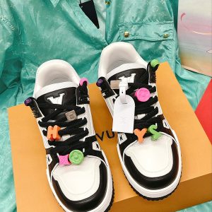 高品质 情侣款 Louis Vuitton路易威登 2023新款Trainer DIY饰扣运动鞋板鞋 可爱胖trainer,来闭着眼睛买的款式,打破颜色的单一变化,更年轻了胖trainer也可以叫发福鞋,憨态可掬,可可爱爱最经典的胖子鞋型,最经典的配色, 高端大气上档次 每个款式配色都很赞!原版开模可爱饰扣,原版完全一样材质做工细节 各种皮面TPU 布 超复杂拼接TPU原版大底,原版包装 码数女35-40 男39-45