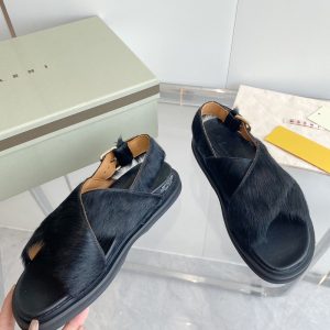Marni 原版复刻 2023马毛新款 玛尼 这款“Fussbettt”小牛毛凉鞋采用优雅的生胶麻绳组合增高平底设计,鞋头呈现包裹效果,饰以长小牛毛边饰,而填充鞋垫确保穿着舒适,上脚美爆了。夏季必备款。 鞋面:原版定制小牛毛 内里:进口羊皮里 大底:生胶麻绳组合大底 码数:35-40(40.41定做不退不换) Tx1121280