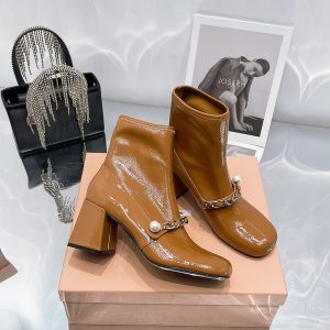 miumiu Patent Leather Pearl Chain Ankle Boots -079 $185.00