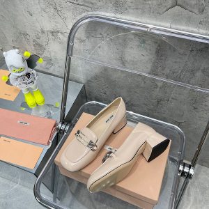 miumiu Women’s Beige Patent Leather Loafers $179.00