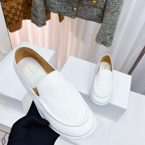 The row_新款复古乐福鞋, 新款The Row乐福鞋,第一眼看到这个鞋子就爱上了,带点复古味随意搭配都好看!各大网红博主都在穿它,整个鞋子非常柔软,好穿不磨脚。简约百搭款~鞋面:原版定制进口水染小牛皮;内里:进口羊皮➕lu麂皮绒,大底:原厂橡胶底,延续了一贯极简风格,无内衬结构使得鞋身极其轻便贴肤,整双鞋子看似简单其实工艺很难,采用全皮套包制作工艺,老师傅制作,超级废料,上脚裸穿舒适柔软亲肤,脚感方面完全不可担心,好穿是必须的,穿若无穿的上脚体验,穿上就不想脱的款,对脚感要求高的闭眼入它!尺码:35-39(40定做),全套原盒包装。 TX1283310