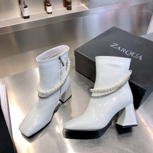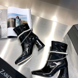 💥Nina Zarqua💥 低调确盛名,前卫也拾旧,珍珠搭配金属链条帅气复古风尽情演绎行走在街头的西部女郎方头靴头极尽狂野气息,宛如一股清流尽收时尚界宠儿眼底🙈🙈 🏴 面料:漆皮 🏴 里料:头层猪皮(垫脚) 🏴 大底:橡胶大底 🏴 码数:35-40 🏴 包装:全套包装发票 TX1173300
