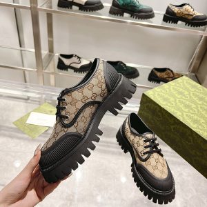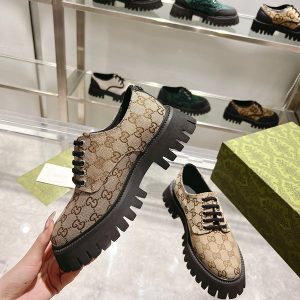 GUCCI官网春季男女同款系带鞋 Gucci 的愿景继续凸显品牌传统的珍贵本质。这双男士系带鞋采用 Guccio Gucci 字母组合图案的超大版型。凸纹鞋底和撞色饰边增添现代元素,将品牌传统的不同篇章联系起来。 驼色和乌木色超长 GG 帆布 男女同款 黑色皮革和橡胶饰边 橡胶凸缘鞋底 系带闭合 低跟 1.6 英寸鞋跟高度和 1.2 英寸防水台,基于 43 码(IT) 意大利制造 女款码数:35~42码 男款码数:39~47码 cx105320