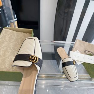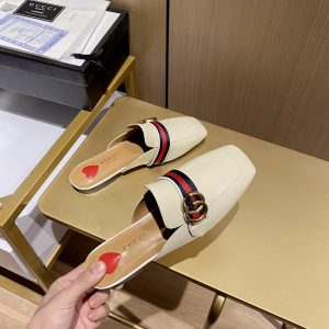 Gucci 古驰 经典女款半拖,众多明星同款。官网1;1定制,面头层粒面牛皮。全羊皮里。羊皮垫脚,搭配原版G…古铜色实心双G筒扣。高端大气。层皮包跟更显奢华品质。采用进口大珍珠,耐磨防滑品牌橡胶大底。黑色,米白色,2色可选,35-40码。 cx172220