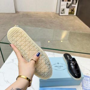 PRADA 普拉达 2023最新款乐福鞋半拖鞋 火爆系列 演绎都市风尚 设计彰显功能性与科技感 新颖压花橡胶三角形徽标展现品牌标志性元素 全牛皮鞋面,上脚无敌舒服的潮牌系列! 原版一致 鞋面开边珠牛皮和牛反绒,垫脚羊皮➕轻盈防滑生胶大底 码数:35-41、男38-45。 Tx1315280