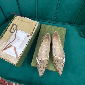 原单品质 ——GUCCI古奇22Ss新款字母扣平底尖头单鞋 芭蕾舞鞋的设计拥有悠久历史,《Aria-时尚咏叹调》系列巧妙运用天马行空的细节和品牌元素,焕新演绎经典单品。这款芭蕾舞鞋采用经典GG帆布/小羊皮,鞋面饰有蝴蝶结细节。品牌名称装饰细节为这款单品注入鲜明的标识内涵。 鞋面:进口小羊皮/GG帆布 内里:山羊皮 鞋底:意大利真皮大底 码数:35-40(41定制不退换) TX1281330