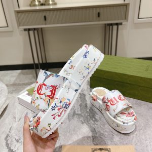 GUCCI古驰女士“Soave”防水台凉拖鞋 夏季清爽时尚款,gucci Blooming Love特别系列,独特的花卉印花设计,并一华丽字体演绎品牌标识, 码数35到44码, 白色,绿色两个颜色 (提示:因产品拍摄角度,显示器分辨率,生产材质批次的不同,产品以实物为准,水台花纹随机,每一双不同) cx105260