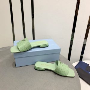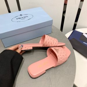 ️️️️——✔✔PRADA普拉达鸵鸟纹牛皮一字平底拖鞋专柜最新款意大利原版入手 奢艳华丽.细节完美. 上脚可任意配搭春夏的美饰服丽精耐致看. 完美上脚更是高人一等. 面料:鸵鸟纹牛皮 内里:水染羊皮.. 大底:意大利真皮底 跟高:2.5cm 码数:35一40. ️色🉑️选 TX1151260