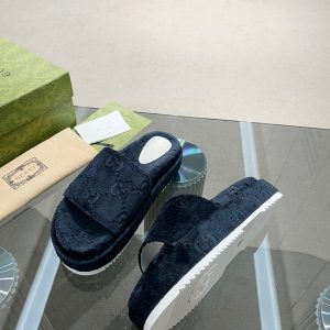 【全年出货,200个色】GUCCI 古驰 最新秋款限量厚底拖鞋 。顶级品质发售 购入正品开发 . 材质.工艺与原版一致:面料:天鹅丝绒面料 鞋面:原版特殊工艺印花 内里:透染羊皮 大底:意大利私模大底 码数:35-43M标准码 41,42,43又订做,不退换 底厚:5.5cm 前掌4cm TX1182240