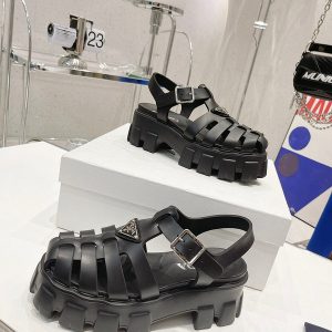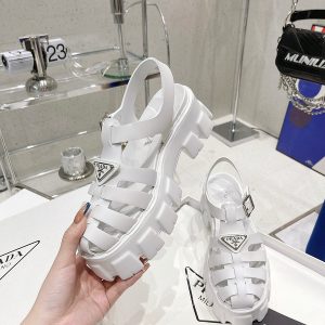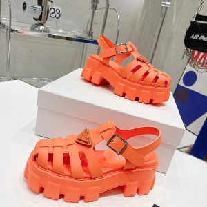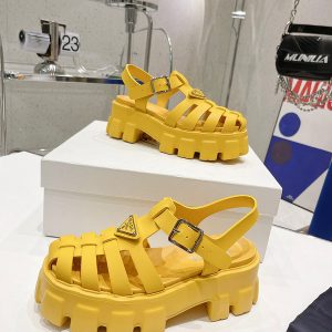 高端版本 超火爆 prada 普拉达 2022最新春夏锯齿罗马编织厚底橡胶凉鞋 复古时髦前卫的轮齿55mm 厚底鞋底搭配橡胶鞋面,让整双鞋轻便舒适 鲜艳色彩 满足不同风格时髦人士的多种选择! 标志性金属三角标搭配古沙滩凉鞋造型,每一个设计元素都踩在时髦点上! 码数35-40 TX1135260