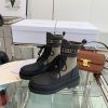 Women’s Dior Black Leather Combat Boots with Knit Cuff -5