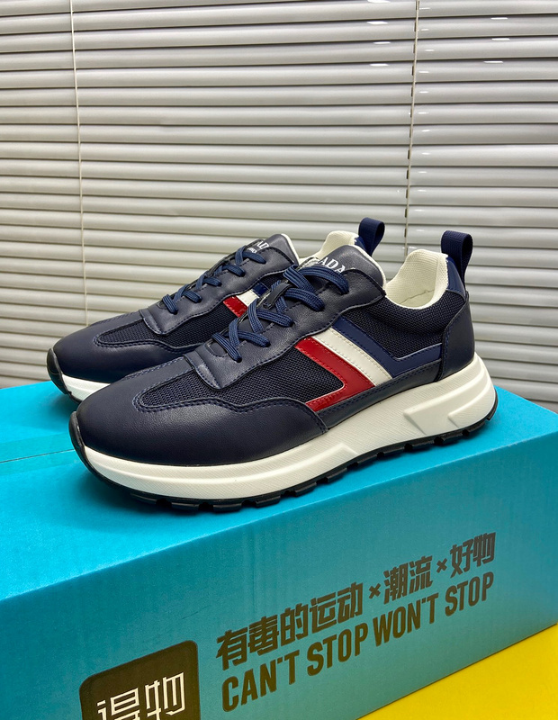 Prada Men’s Leather Sneakers with Red and White Stripes -2