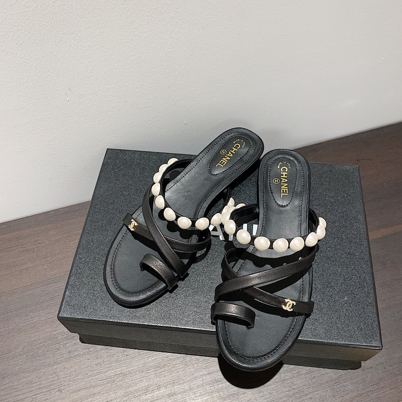 Chanel Women’s Pearl Sandals, Casual Summer Slipper Black