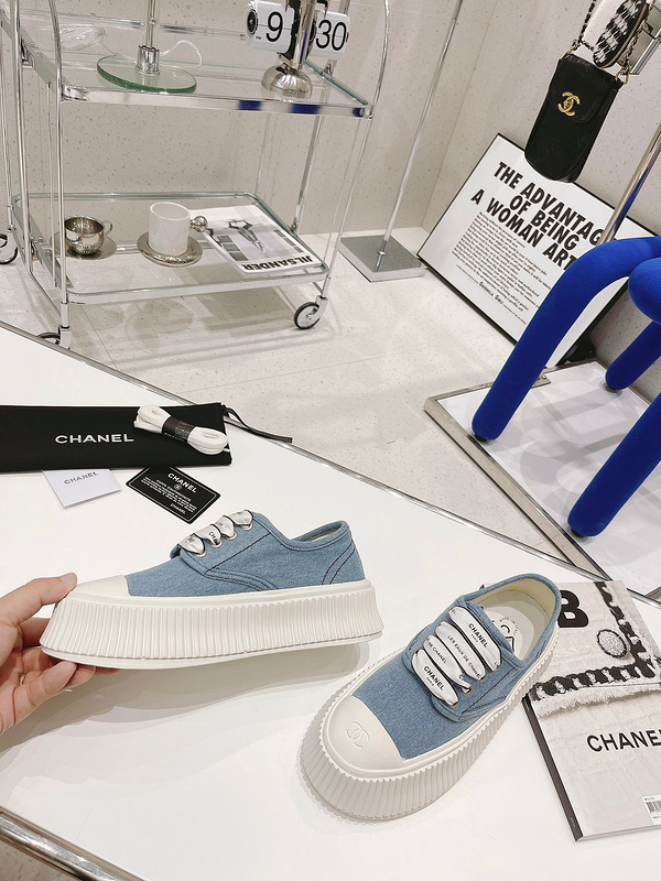 CHANEL 香奈儿 最新厚底牛仔布饼干鞋 小白鞋单鞋 目前超级流行的饼干鞋,网红明星小红书狂追热推 发售蠢萌可爱的造型带了点复古味! 超清新可爱 造型特殊,很有辨识度, 显瘦显腿长,绝对实力派,穿上也很舒服,高颜值 舒适,增高 一定要推荐给大家,今年系列的主打, 极简的风格, ❶面料:原版订制牛仔布 ❷内里:透气布 ❸垫脚:水染牛皮,脚感舒适, ❹大底:原版开模高弹橡胶松糕大底 ❺底厚:5cm ❻包装:原版全套包装 ❼码数:35-40 TX1188240
