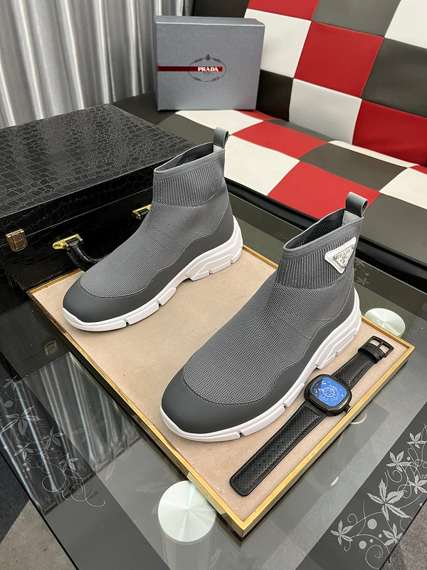 Prada Men’s Knitted High-Top Sneakers with Rubber Sole -2