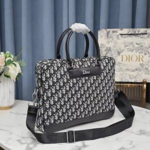 Dior Women’s Black Leather Card Holder with Oblique Canvas