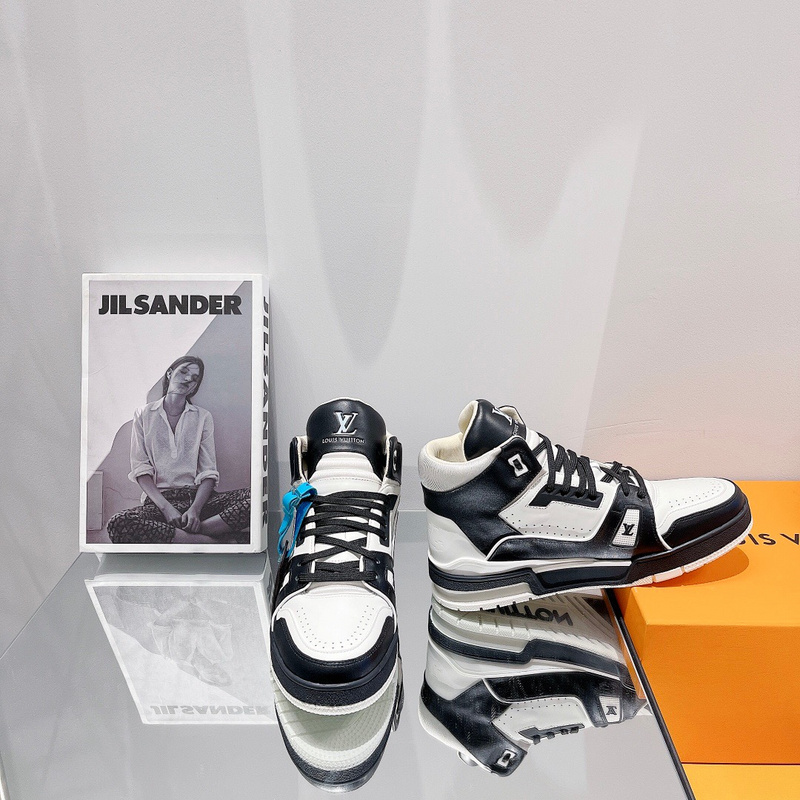 路易喴登LV 春夏秀款 TRAINER 508高帮球鞋!原版开发,市面最顶级版,这款的难度真的很大✔️鞋面工艺复杂,所有东西都要重新开模定制,绒面小牛皮材质,私模TPU大底 外底印有Monogram花卉,码数35-44 001580