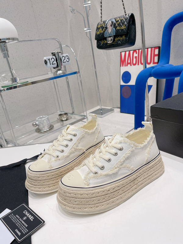 Chanel Platform Sneakers, Women’s Lace-Up Sneakers White