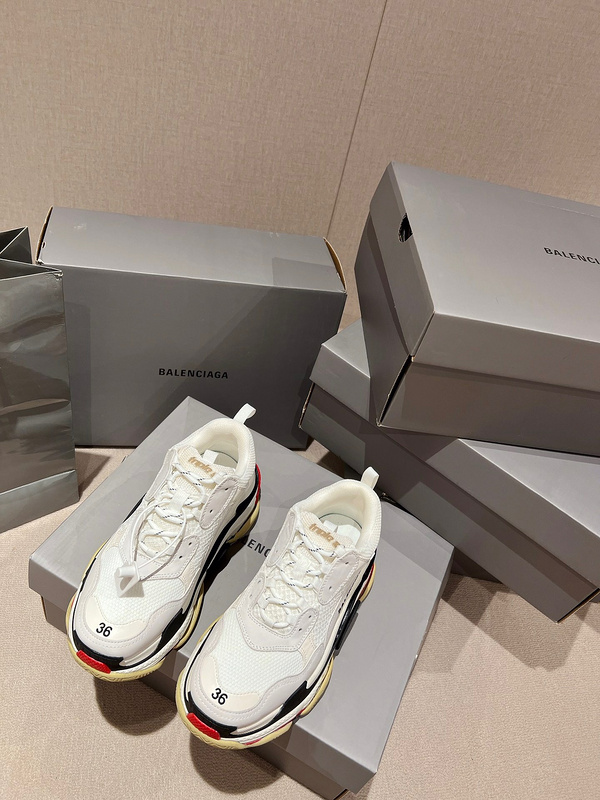 高品质 巴黎一代Balenciaga Triple-s 巴黎世家-老爹鞋。全球最火爆的复古慢跑鞋。🔺复古做旧工艺~原版组合大底,重工艺,非低端2层组合底!鞋面选用进口降落伞布拼接牛磨砂24块一尺,區別市场普通帆布!后包牛皮高周波压印! ️专柜购买正品的时候特意问了店员关于材料的问题,size:35-41码数,男款39-45配套布袋 鞋带 合格证齐全 TX1217430