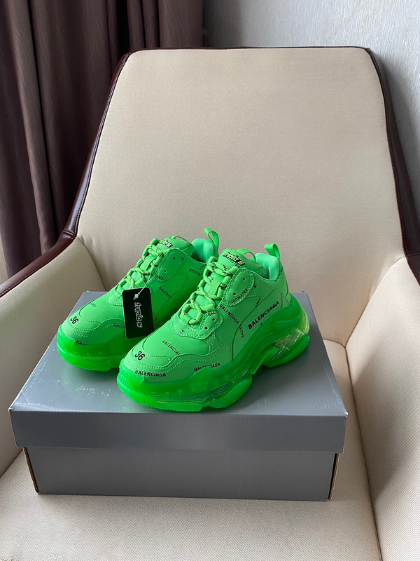 Balenciaga Triple-s 巴黎世家-老爹鞋。全球最火爆的复古慢跑鞋。🔺复古做旧工艺~原版组合气垫大底,重工艺,非低端2层组合底!鞋面选用进口降落伞布拼接牛磨砂24块一尺,區別市场普通帆布!后包牛皮高周波压印! ️专柜购买正品的时候特意问了店员关于关于材料的问题,size:女35-41码数,男39-45码数,配套布袋 鞋带 合格证齐全