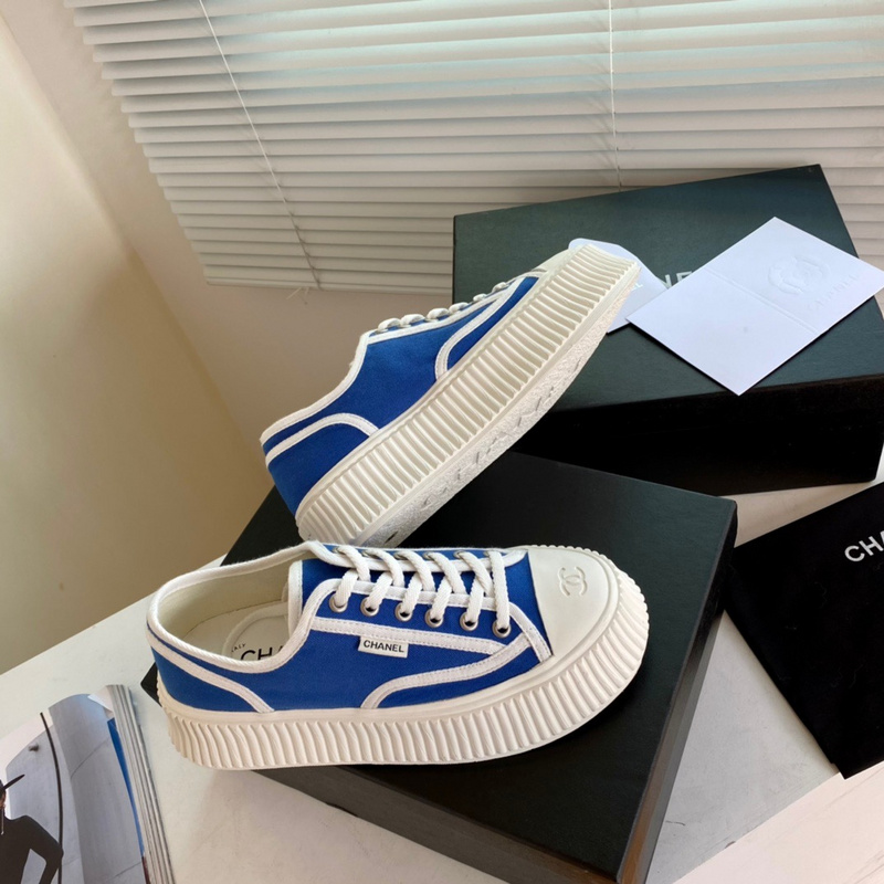 CHANEL Canvas Biscuit Shoes For Women BLue