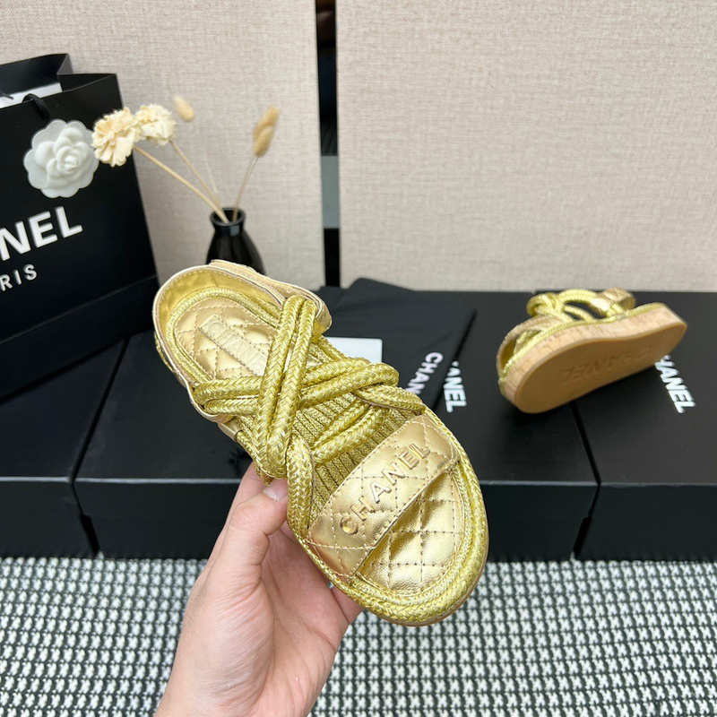 CHANEL 香奈儿 夏日新款草绳魔术贴拖鞋草绳这款是菱格纹小羊皮 踩上超舒服凉鞋都是美眉们必不可少的出行单品每一个你都是特别的.请享受这一刻闪亮码数:35~40 标准码 (41定做不退不换) TX1164290