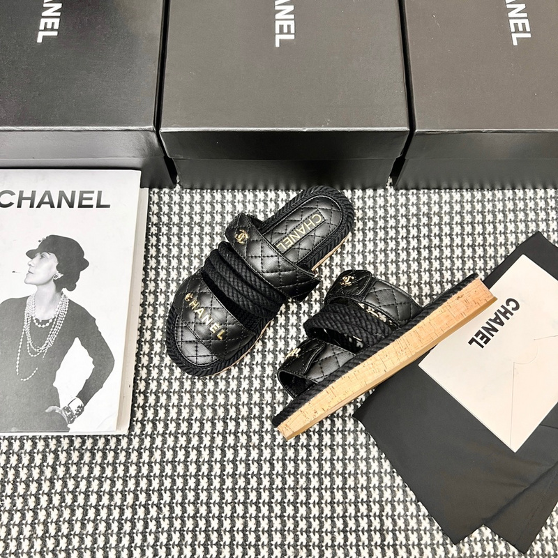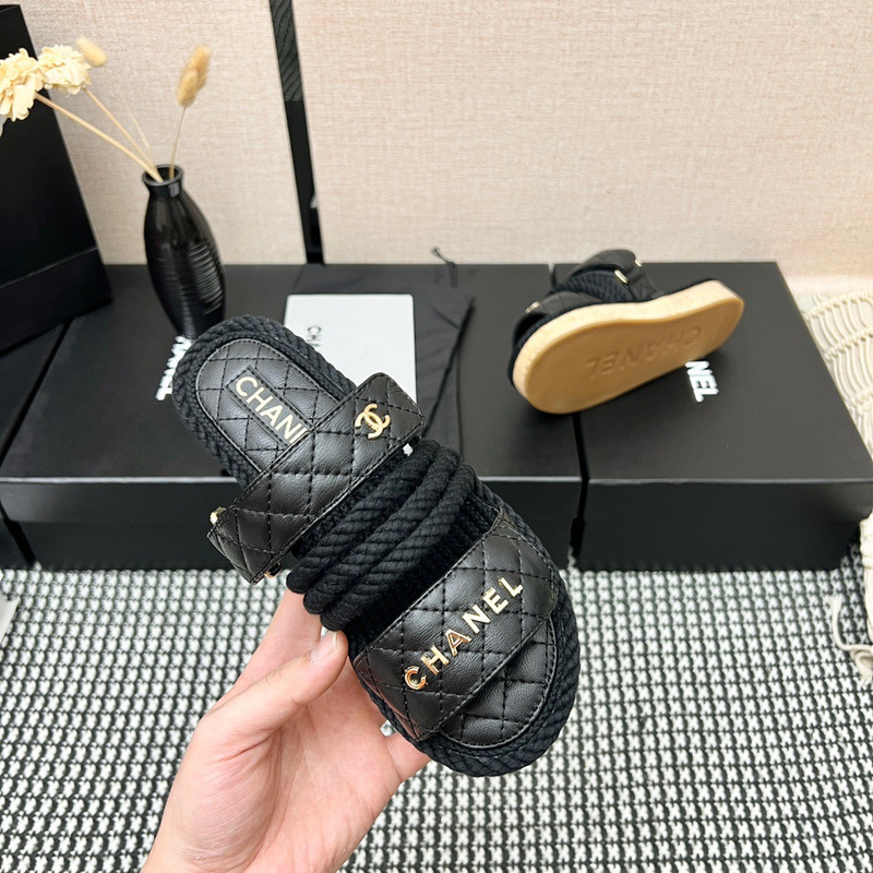 CHANEL 香奈儿 夏日新款草绳魔术贴拖鞋草绳这款是菱格纹小羊皮 踩上超舒服凉鞋都是美眉们必不可少的出行单品每一个你都是特别的.请享受这一刻闪亮码数:35~40 标准码 (41定做不退不换) TX1164290
