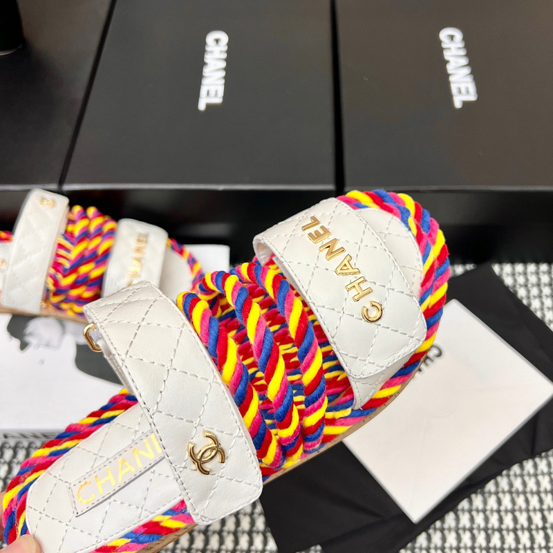 CHANEL 香奈儿 夏日新款草绳魔术贴拖鞋草绳这款是菱格纹小羊皮 踩上超舒服凉鞋都是美眉们必不可少的出行单品每一个你都是特别的.请享受这一刻闪亮码数:35~40 标准码 (41定做不退不换) TX1164290