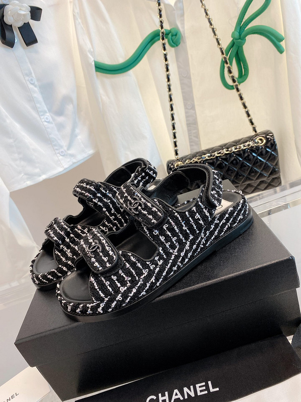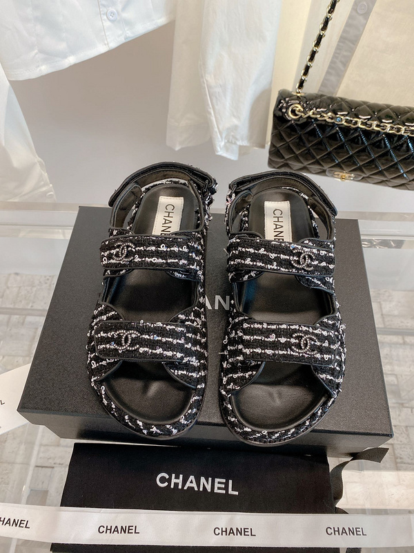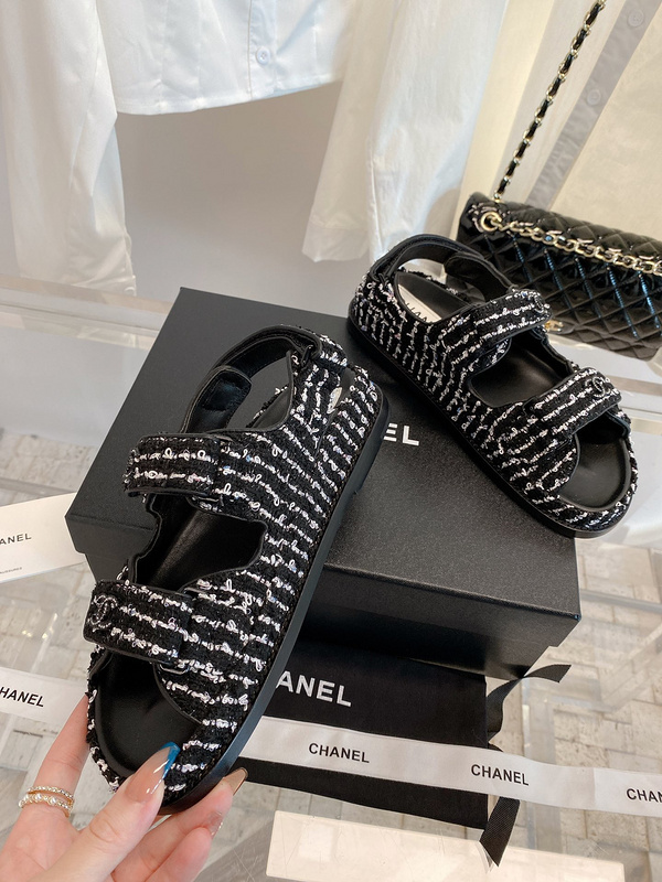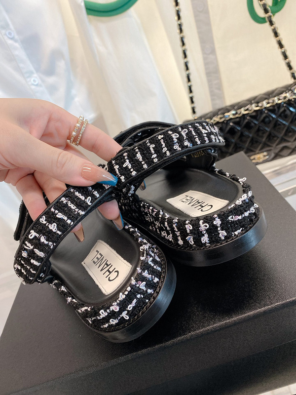 Chanel 小香2022顶级徽章沙滩鞋️美爆了. 今年必须入手的魔术贴凉鞋,这款是最简单而且最贵的万能百搭神器!超级耐看耐穿哟! 🔹鞋面原版定制材料,质感真的很好,而且皮质细腻,上脚有舒适的裹脚感。 🔹开模精致小香的logo五金扣!经典又不容易过时! 🔹内里混种羊皮,意大利真皮大底! 🔹尺码35-39 #40/41定制 TX1188350