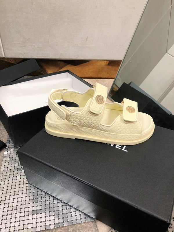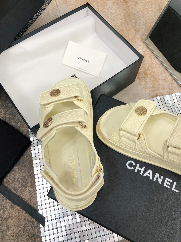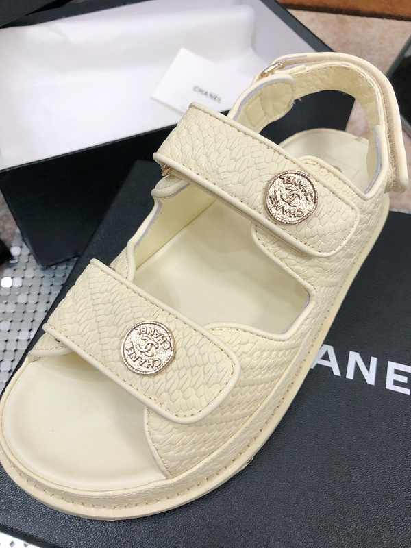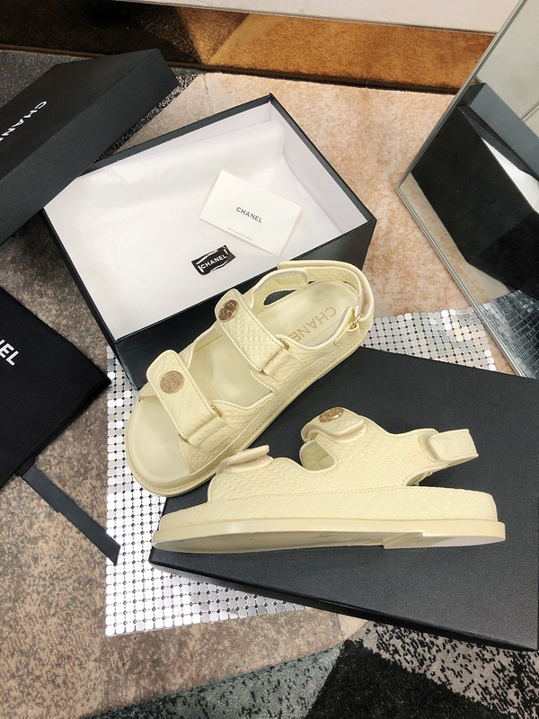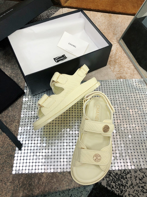 CHANEL 香奈儿早春最新魔术贴凉鞋 原版复刻 顶级版本 众多明星纷纷推荐 开春必火单品之一. 上脚超级的舒适哦且鞋底很轻!超爱这款满鞋都是LOGO,它的设计就在此吧,真香系列… 面料:进口头层荔枝牛皮/原版一致布料+原版工艺 内里:顶级小羊皮 码数:35~41(41定做不退不换) TX1345290