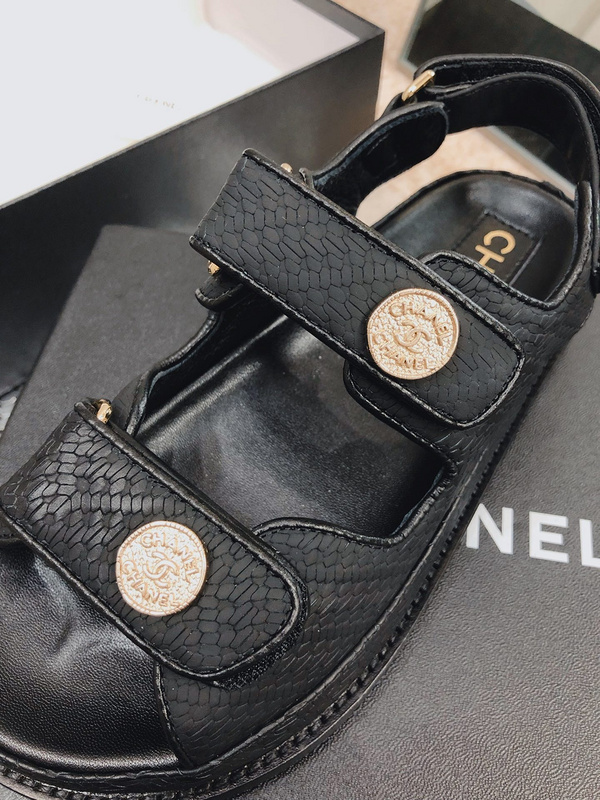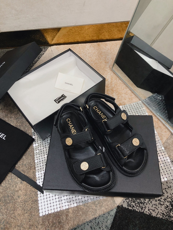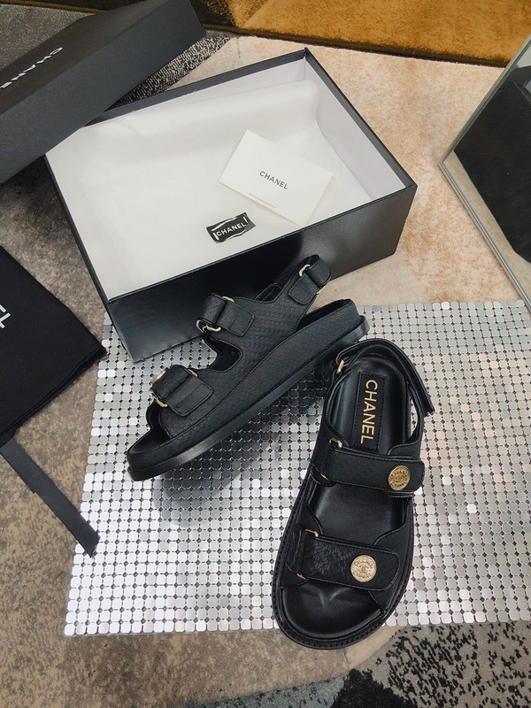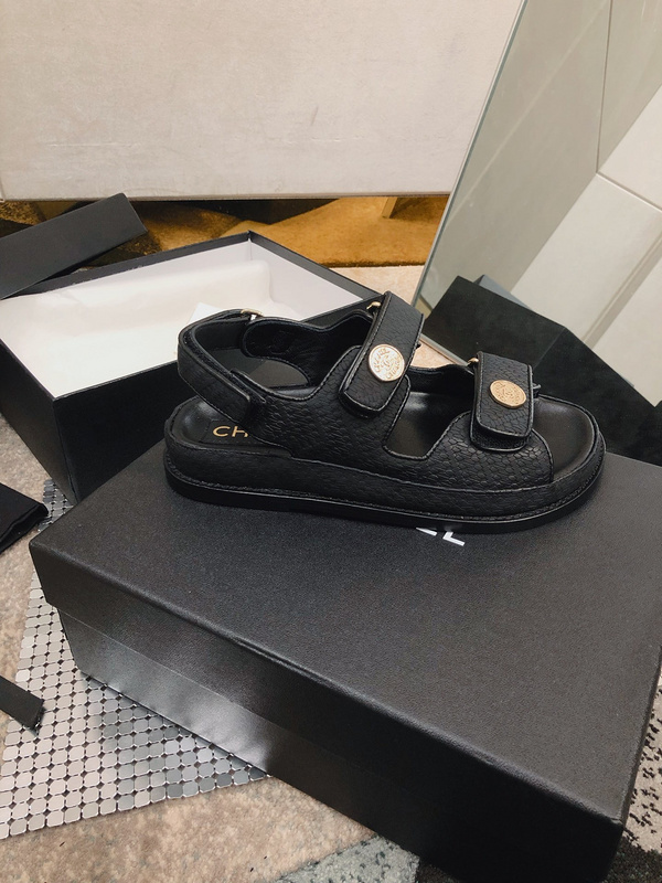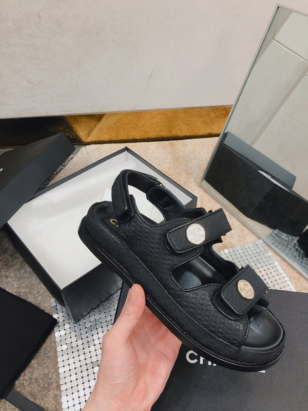 CHANEL 香奈儿早春最新魔术贴凉鞋 原版复刻 顶级版本 众多明星纷纷推荐 开春必火单品之一. 上脚超级的舒适哦且鞋底很轻!超爱这款满鞋都是LOGO,它的设计就在此吧,真香系列… 面料:进口头层荔枝牛皮/原版一致布料+原版工艺 内里:顶级小羊皮 码数:35~41(41定做不退不换) TX1345290
