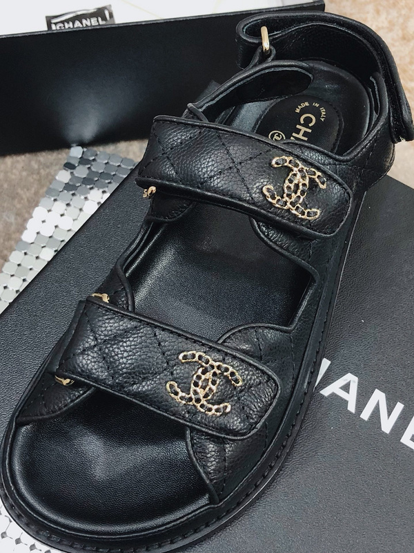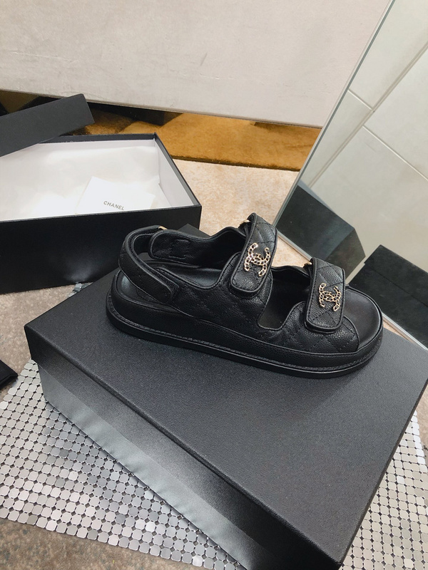 CHANEL 香奈儿早春最新魔术贴凉鞋 原版复刻 顶级版本 众多明星纷纷推荐 开春必火单品之一. 上脚超级的舒适哦且鞋底很轻!超爱这款满鞋都是LOGO,它的设计就在此吧,真香系列… 面料:进口头层荔枝牛皮/原版一致布料+原版工艺 内里:顶级小羊皮 码数:35~41(41定做不退不换) CX6260