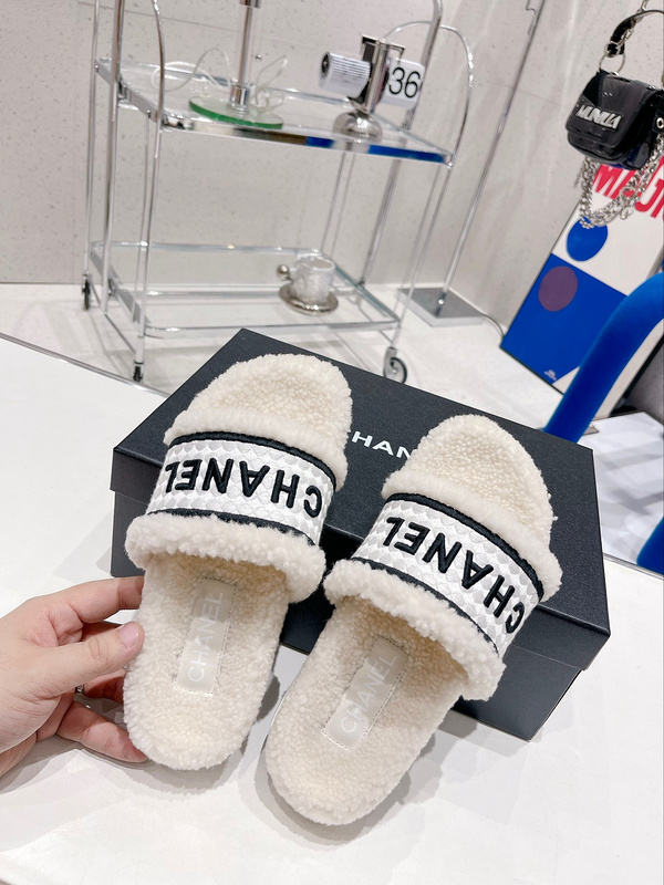 Chanel香奈儿2022秋冬电绣字母羊毛拖鞋 经典大气立体格子毛织物鞋面 全羊毛内里垫脚 一字平跟毛拖 非常时尚好穿!大底采用原模一致超轻中底及耐磨橡胶大底 码数35-42 TX1173260