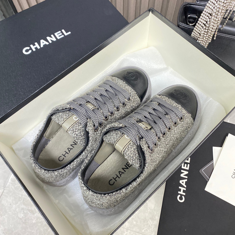 Chanel香奈儿22A秋季新款小香拼色厚底饼干鞋 22A这季还出了一双黑马饼干鞋 整体颜色为卡其色。 鞋头为黑色皮质 藏有低调的双C暗纹 logo鞋身粗花呢材质 搭配麂皮厚厚鞋底 增高的同时 整体颜色与肤色融为一体 拉长了整个腿部线条 妥妥的百搭神器配合送专柜精美包装🛍📦 面料:原版定制粗花呢+牛皮 内里:柔软牛皮内里 鞋底:原版开模防滑橡胶材质 底厚:4CM Size: 女款35-39(40定做不退换) CX19340
